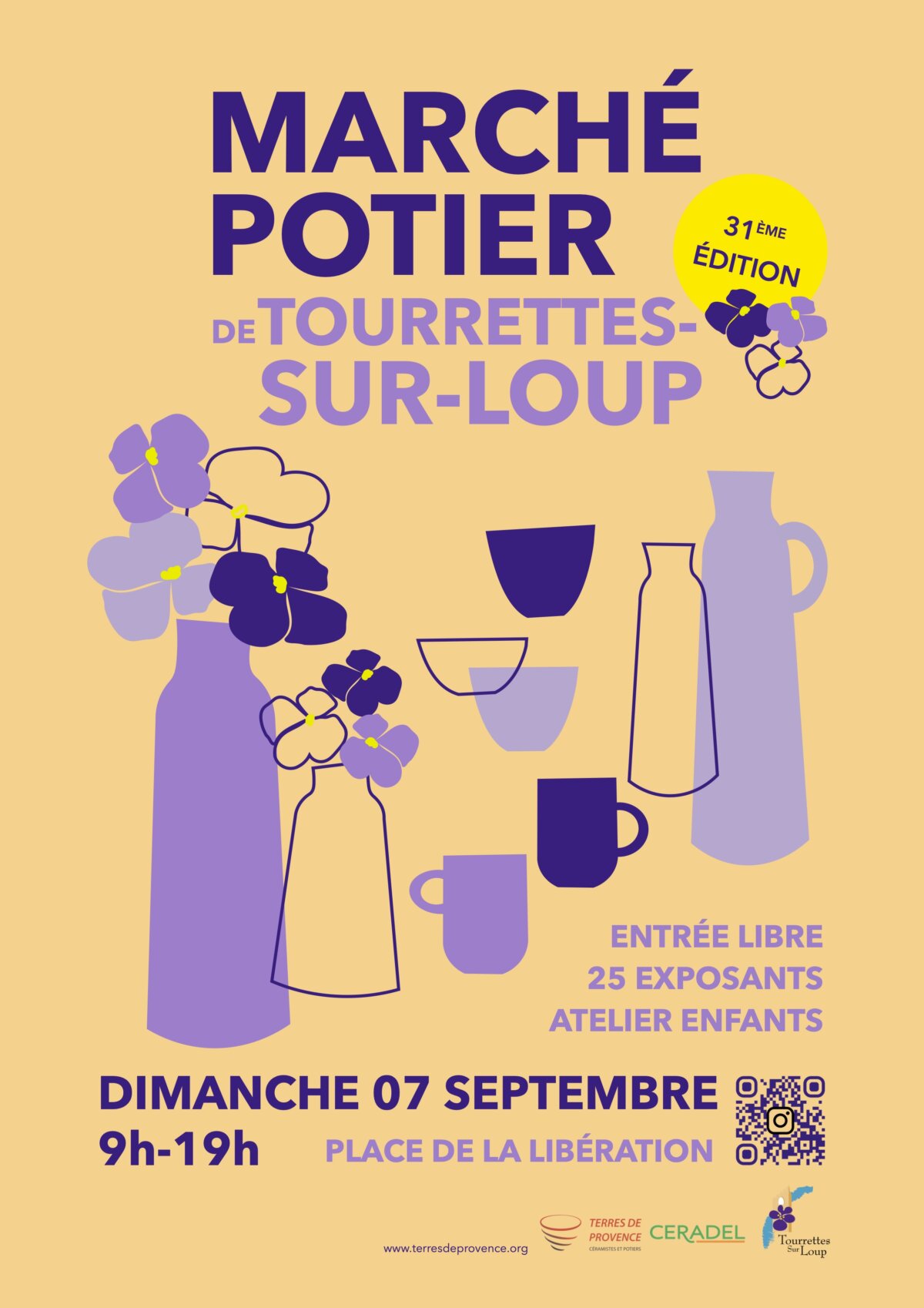 La 31e édition du marché potier de Tourrettes-sur-Loup est organisée par l’association régionale Terres de Provence et cautionnée par le Collectif national des Céramistes, avec le soutien de la commune et du Bureau d'Information Touristique.