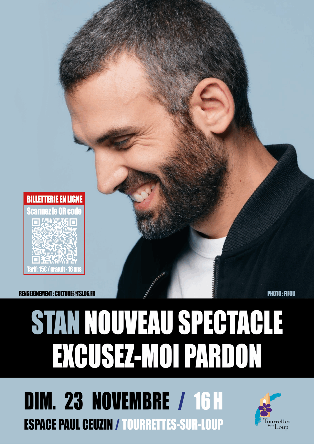 Tout en poursuivant le succès d’ “Et si les œuvres d’art pouvaient parler ?”, joué à ce jour plus de 230 fois dans toute la France, Stan, au civil Christophe Carotenuto, propose “Excusez-moi pardon !”, un nouveau seul en scène qui mêle humour, théâtre, chanson, musique et danse.