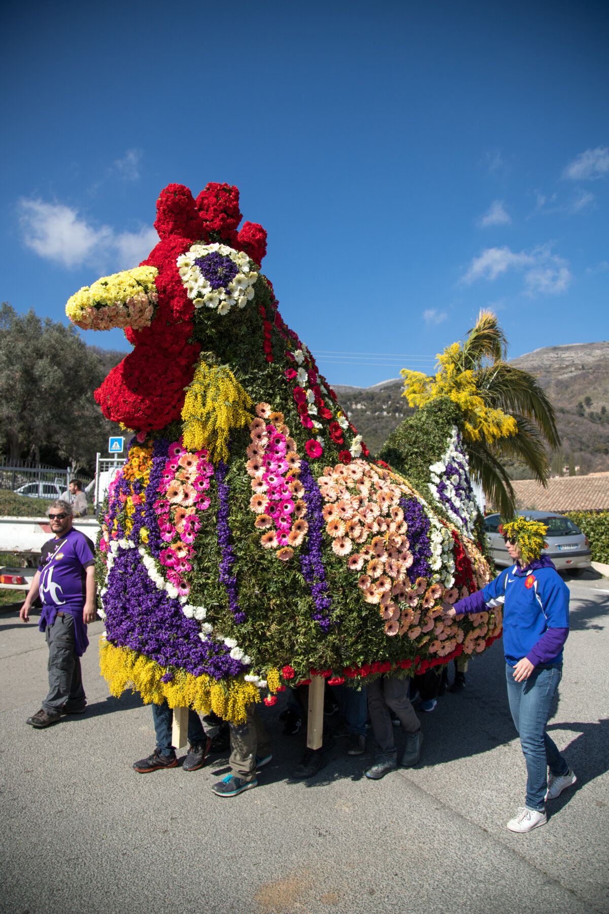 Ici, il s’agit du char de l’édition 2023, une véritable œuvre florale haute en couleurs qui témoigne de l’engagement et de l’esprit d’équipe du club.