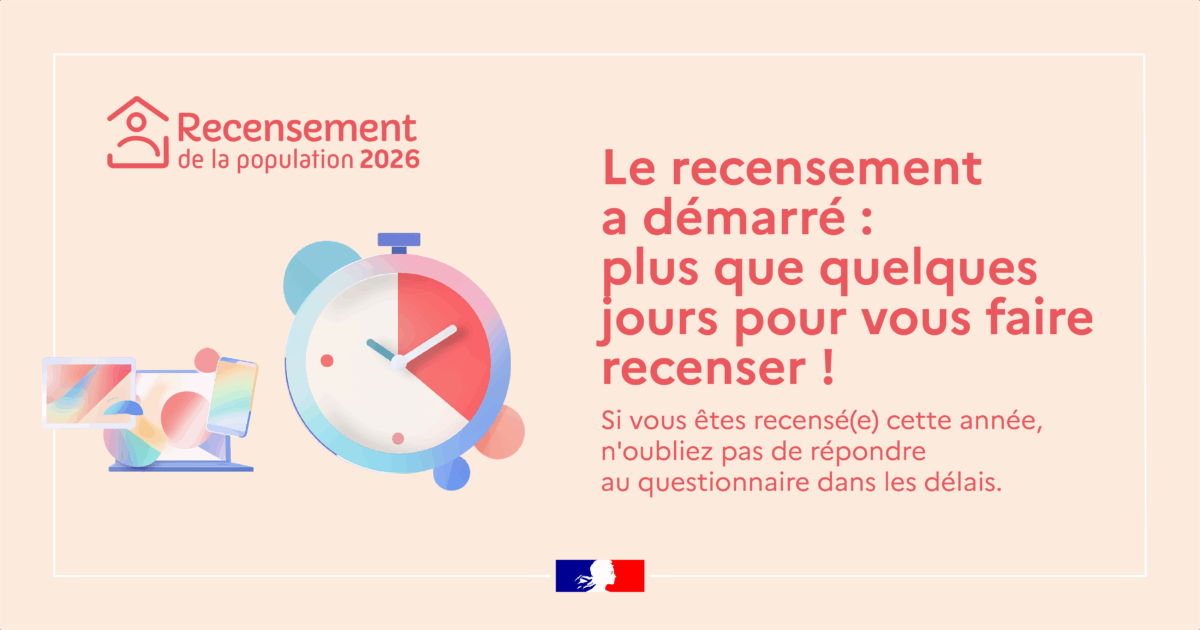 - Rappel : recensement de la population 2026 jusqu'au 14 février minuit