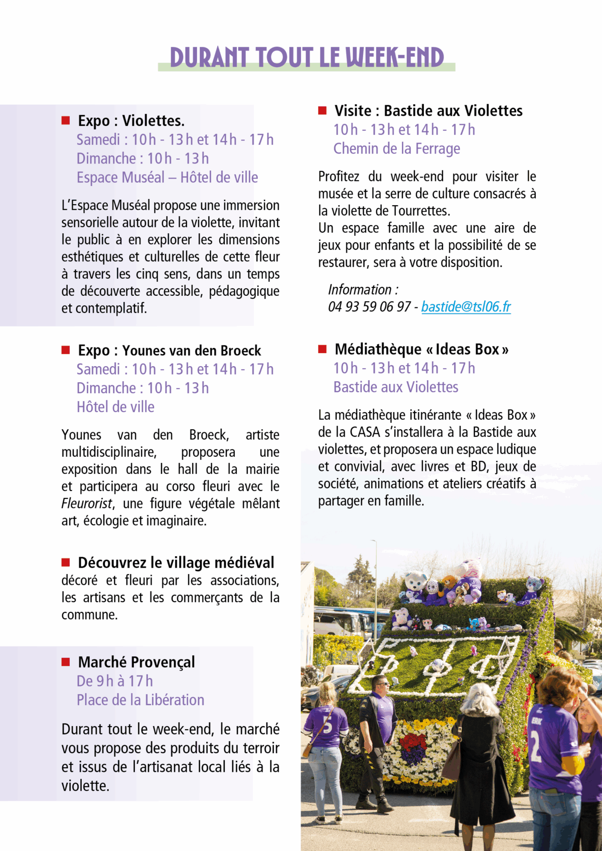 - Médiathèque itinérante "Ideas Box" - Vernissage de l'exposition : La Violette. Une fleur, 5 sens - Fête des Violettes : ouverture des réservations pour le repas traditionnel - La Fête des Violettes 2026