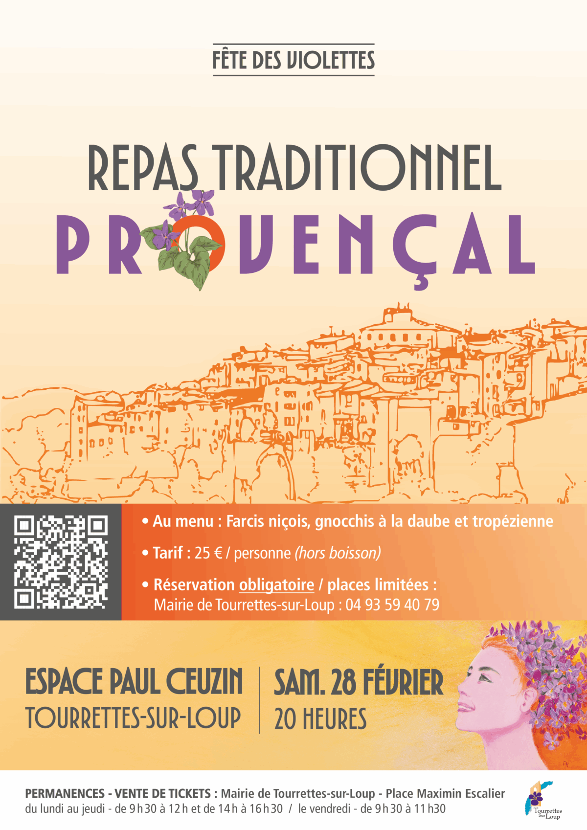 Ne manquez pas le repas traditionnel provençal organisé dans le cadre de la Fête des Violettes, le samedi 28 février à 20 heures. Réservez dès à présent votre place !