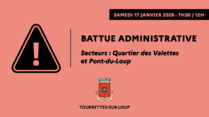 En raison de la prolifération des sangliers et des nuisances constatées, une battue administrative est organisée à la demande de la préfecture sur la commune de Tourrettes-sur-Loup, dans les secteurs des Valettes et de Pont-du-Loup.