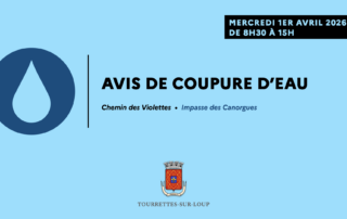 Suez, le gestionnaire du réseau d’eau potable à Tourrettes-sur-Loup, procédera à une intervention technique ce mercredi 1er avril 2026, entre 8h30 et 15h. Ces travaux entraîneront une coupure d’eau qui impactera une partie de la commune : Chemin des Violettes, impasse des Canorgues…