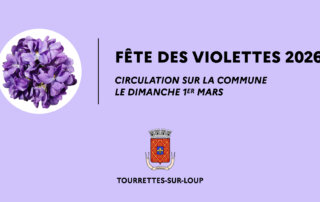 À l’occasion de la Fête des Violettes, le dimanche 2 mars 2025, plusieurs axes routiers seront fermés à la circulation. Les habitants de la commune directement impactés par ces restrictions pourront obtenir un laissez-passer afin de circuler en véhicule ce jour-là (hors zone de sûreté). Pour ce faire, présentez-vous à l’accueil de la Mairie, munis d’un justificatif de domicile et du numéro d’immatriculation de votre véhicule..