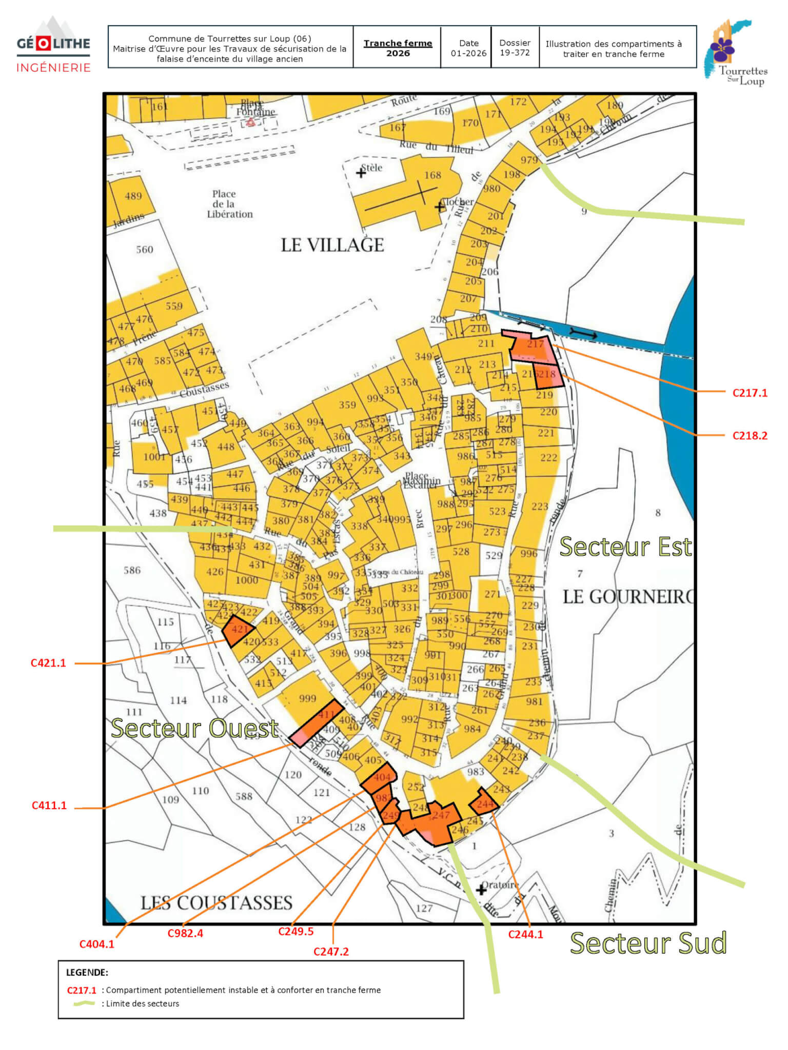 Les compartiments identifiés correspondent aux superficies sur lesquelles les ancrages de confortement vont être installés.