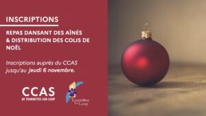 À l’occasion des fêtes de fin d’année, le Centre Communal d’Action Sociale (CCAS) de Tourrettes-sur-Loup propose aux aînés de la commune de participer au repas dansant du mardi 16 décembre 2025 à l’Espace Paul Ceuzin, ou de bénéficier d’un colis de Noël.