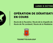 La commune de Tourrettes-sur-Loup a programmé une opération de dératisation à partir du lundi 6 octobre. Elle concernera quatre secteurs : route de la Pauvetta, route de la chapelle de la Madeleine, route de Pie Lombard et route de la Madeleine...