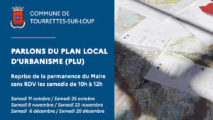 Afin de permettre à chacun d’échanger librement sur l’élaboration du Plan Local d’Urbanisme (PLU), sujet clé pour l’avenir de la commune de Tourrettes-sur-Loup, le Maire, Frédéric Poma, s’engage à votre écoute et assurera une permanence sans rendez-vous, exclusivement dédiée à ce dossier.